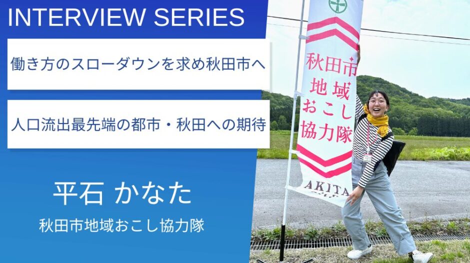 兵庫県明石市出身の平石さんは、大学生時代を秋田県秋田市で過ごし、神戸市での会社員生活を経て、再度、秋田市へ移住されました。現在は移住先としても人気な地元・明石市や、都会の魅力が詰まった神戸市ではなく、あえて秋田市を選んだのは「運命」だったという平石さん。今回は地域おこし協力隊の移住コーディネーターでもある平石さんに、ご自身のキャリアと照らし合わせた移住の経緯や、秋田市の魅力、人口減少する地方の実情などについて伺いました。