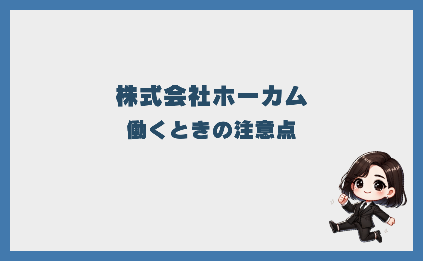 ここでは、株式会社ホーカムで働く前に確認すべき注意点を解説します。
