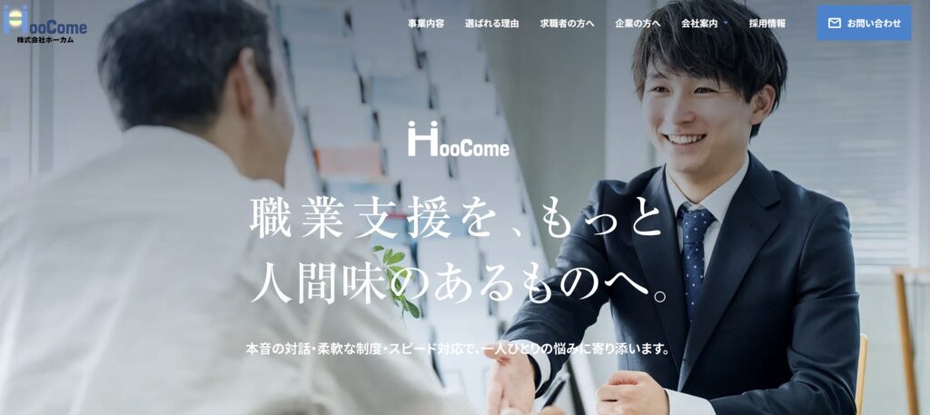 株式会社ホーカムは、就職や貧困に悩む求職者と真摯に向き合う就職・転職支援サービスが特徴です。